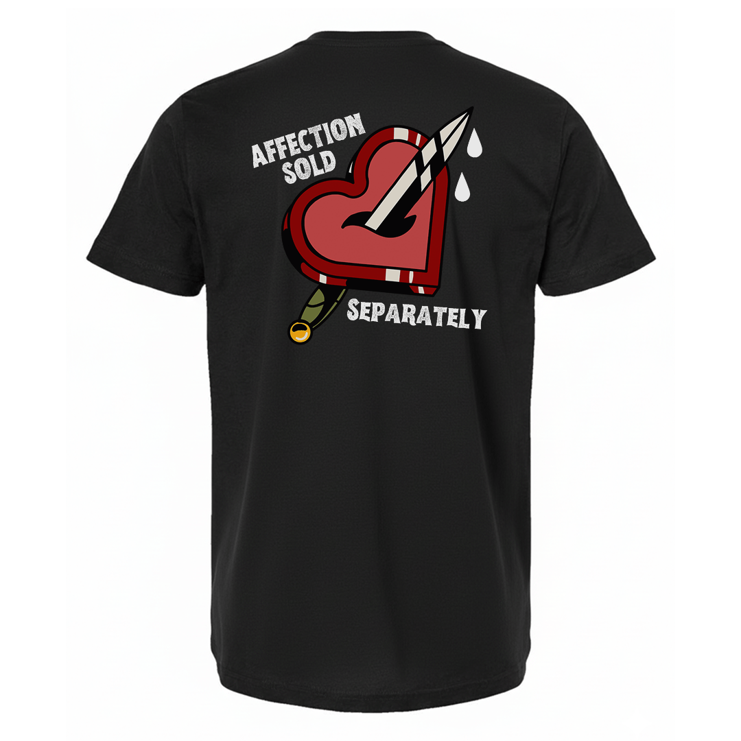Not everyone leads with their heart and this design makes that clear. The Affection Sold Separately design features bold tattoo-style artwork of a pierced heart, dripping with raw emotion and zero apologies. It’s a nod to guarded souls, hard lessons, and the strength it takes to keep moving forward without handing out pieces of yourself for free.