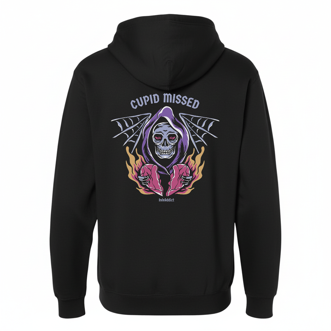 This design flips Valentine’s energy on its head with a grim reaper twist, broken heart in hand, and fire behind it. Inspired by classic tattoo imagery and dark humor, it’s made for those who don’t chase romance or play into the hype.