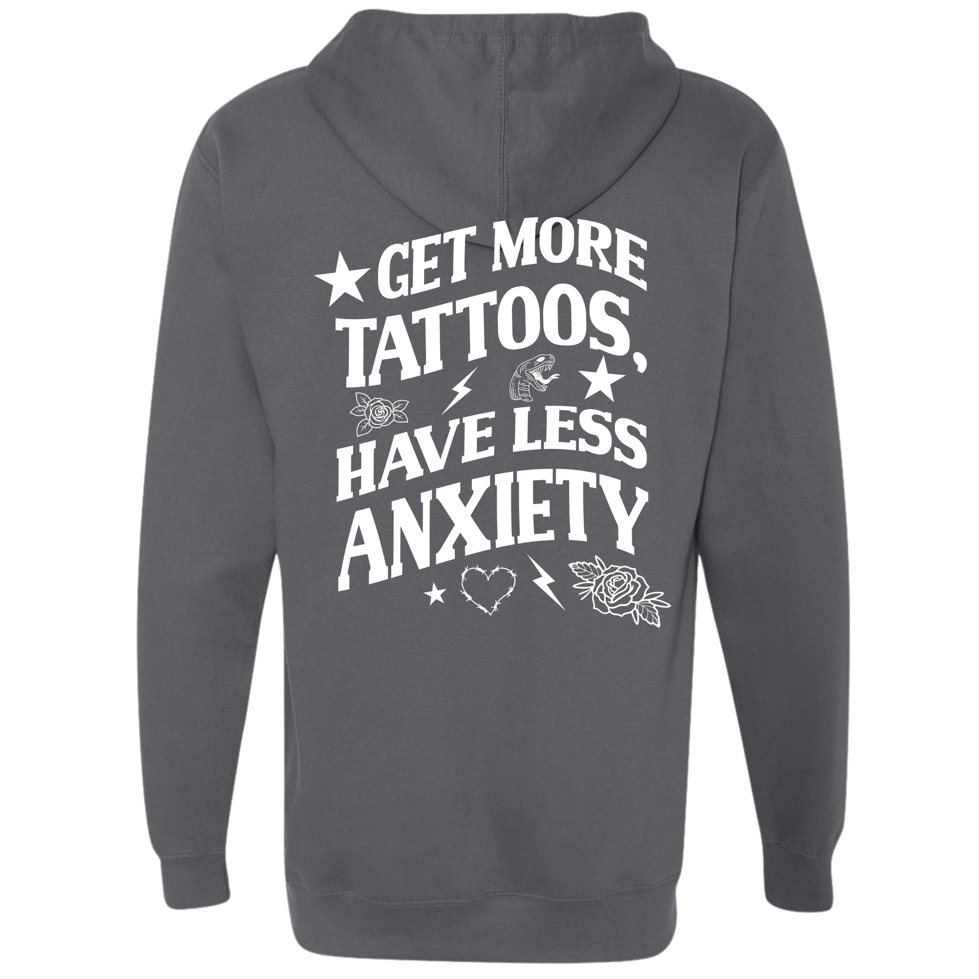 More Tats Less Anxiety isn’t just a statement—it’s a mindset. For many, getting tattooed is more than art on skin—it’s therapy. It’s the rush of endorphins. The calm in the needle’s rhythm. The power in choosing what your body wears. This design speaks to those who’ve found peace in ink—who’ve turned pain into confidence and anxiety into bold expression. Wear it as your reminder that every tattoo is a step toward reclaiming control and feeling more like you.