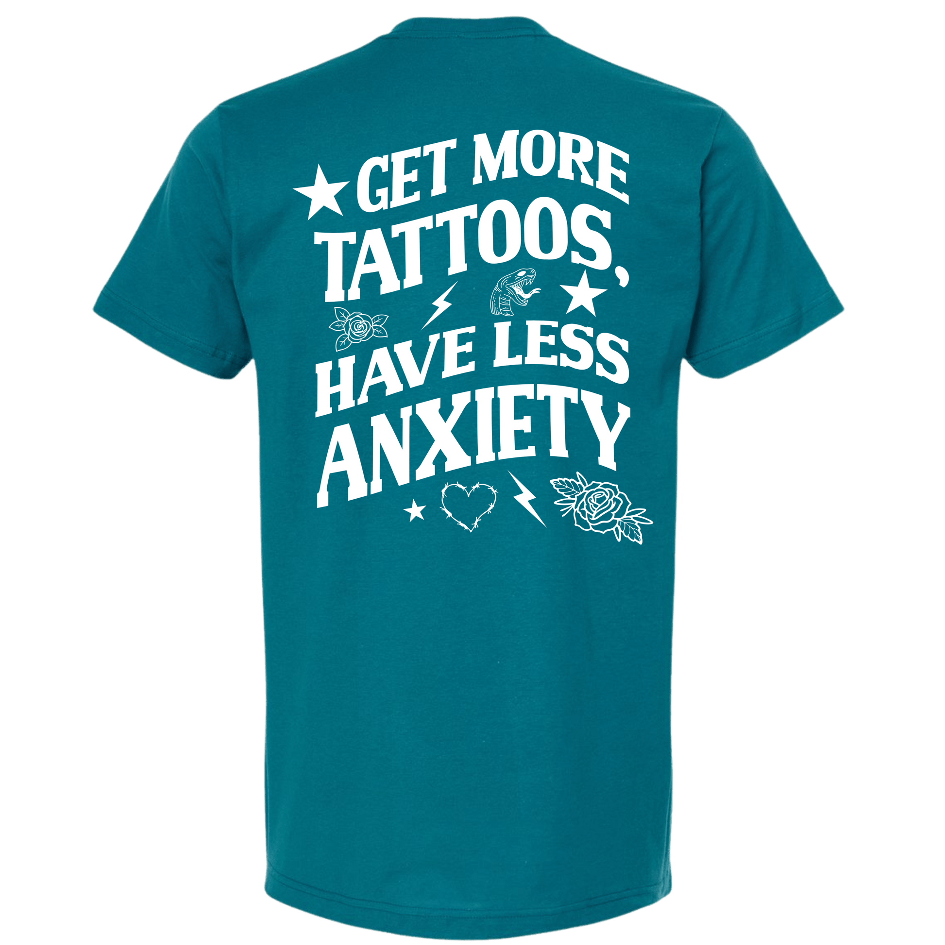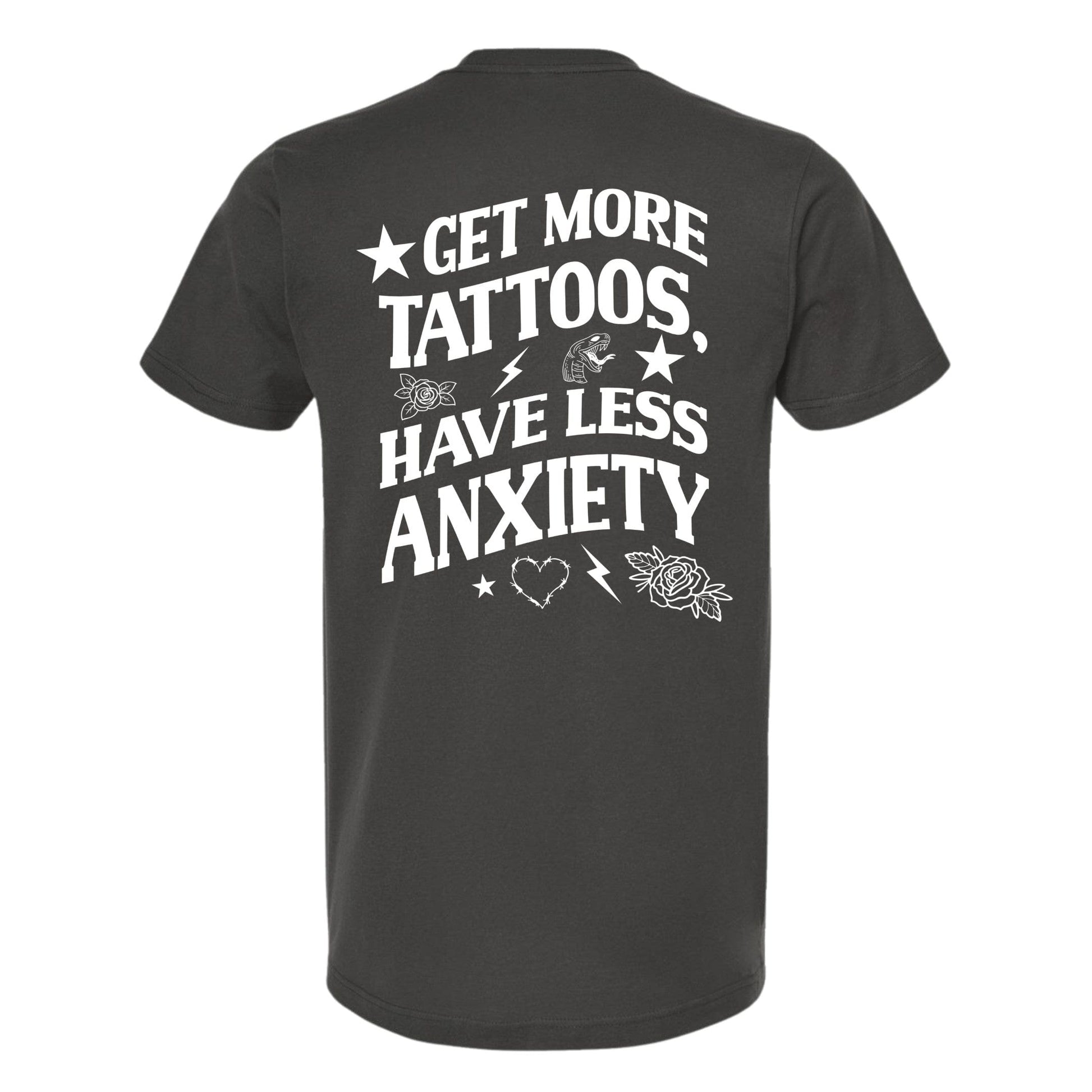 More Tats Less Anxiety isn’t just a statement—it’s a mindset. For many, getting tattooed is more than art on skin—it’s therapy. It’s the rush of endorphins. The calm in the needle’s rhythm. The power in choosing what your body wears. This design speaks to those who’ve found peace in ink—who’ve turned pain into confidence and anxiety into bold expression. Wear it as your reminder that every tattoo is a step toward reclaiming control and feeling more like you.