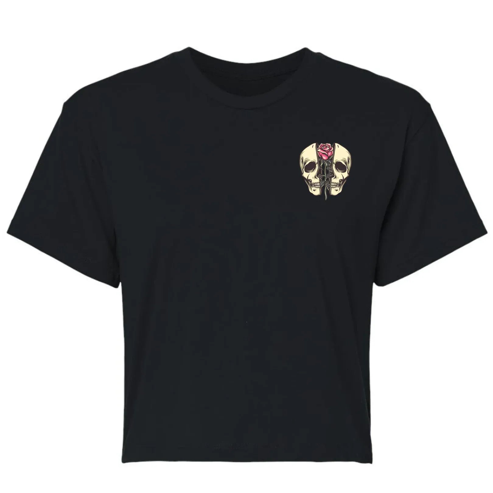 Love isn’t always hearts and fairytales, and this one makes that crystal clear. The Not Your Valentine design features bold tattoo-style artwork of a skull framed by blooming roses, blending beauty with bite. It’s the perfect balance of soft visuals and sharp truth.