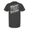Trust Issues & Great Tattoos is a nod to lived experiences, sharp instincts, and choosing self-expression over empty promises.